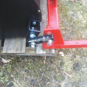 Yax uses dog bone connectors between the pins on the bucket and the attachments and a steel bar pinned to the clevis in place of an adjustable top link.