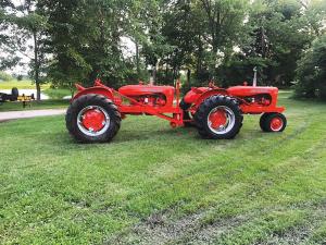 He Re-Created His Grandad’s “Double Header” Tractors FARM HOME Food “My granddad farmed more than 1 000 acres back in the 1950’s and hooked two WD45 Allis tractors together to create what he called a ‘Double Header’ tractor ” says Jim Batts of Lizton Ind “I was a kid when he did that and decided a few years ago to re-create his idea ” He bought two old WD45s and got them both running well Then he built a hitch to connect the two tractors cleaned everything up and painted the double tractor rig so it looks brand new The project took him nearly three years but he says it was more fun than work Batts says his grandfather built his Double Header because he wanted to make his farming operation more efficient “Two guys driving two WD45s pulling two 3-bottom plows got a lot done but one guy driving the tandem setup pulling a 5-bottom plow was more efficient ” Batts says “He built the tandem by removing the front wheels from one tractor and building a sturdy hitch that mounted on the drawbar of the other one He bolted the hitch pulling the rear tractor to the front one so both tractors pulled in unison ” Batts says the operator rode on the front tractor and controlled both of them with levers for the clutches throttles and hydraulics He re-created his the same way “The driver put both tractors in the same gear before he drove then he’d engage the clutches at the same time regulate the speed with the throttle lever and the hydraulics with the other lever He always had to be concerned about throttling down the back tractor at the end of a field so it didn’t push the front one while turning ” The setup worked so well that Batts’ grandfather built two more just like it Each team would plow pull a 16-ft wide disk made from two 8-ft disks or a 4-row planter made from two 2-row units Batts says “he’d separate the tractors after spring plowing and planting and use them for cutting raking and baling hay cultivating and pulling his three Allis combines during harvest Unfortunately he was killed by a drunk driver in 1960 during his farming heyday ” Batts says his dad and uncle took over the operation and continued using the Double Headers They even teamed a D19 Allis with one of the 45s to pull an 8-bottom plow in the late 1960’s In 1974 they bought a “factory-built” 4-WD 850 Versatile that Batts says is still running today “Grandpa was a hard-working guy and a great mechanical mind who rebuilt a lot of machinery ” Batts says “Even with his large acreage he never owned a pickup but he’d get a new car every year He’d take the back seat out of his car and use that space to haul parts seed fuel and supplies around the farm The seat only went in when the family went to town ” Contact: FARM SHOW Followup Jim Batts 8925 N Cty Rd 350 West Lizton Ind 46149