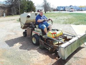 “The mower is a 932 Grasshopper,” says Penick. “It was the strongest they made when I bought it and has a 52-in. mower deck. I removed the wheels from a tow-behind sprayer and set it on the platform.”