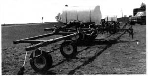 Heavy tube steel was used to build the cart which is carried by a pair of combine wheels. Smaller wheels - two on each wing of the boom - came off a farm wagon. Booms fold up hydraulically and the sprayer is fitted with automatic spray controls and a foam marker. A hydraulic-driven spray pump makes the rig self-contained. O'Dell just has to hook up hoses.