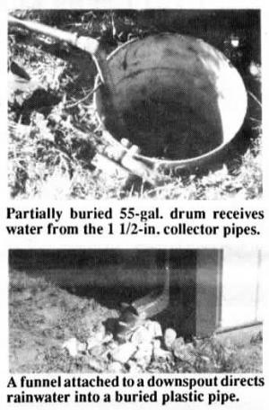 "We've used this rain water collection system for three years. In 1988, one of the hottest and driest summers on record, we had good garden crops and even had plenty of water to put on our evergreens."