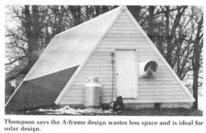 Thompson says the A-frame design wastes less space than a conventional building. "The angled walls trim away excess airspace that would have. to be heated and ventilated in other structures," he points out.