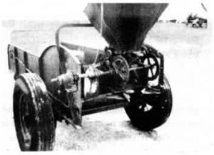 I mounted an endgate seeder on the back of a 2-wheel manure spreader to seed ARP land and waterways. The seeder is driven by a chain that runs off the spreader-wheel sprocket. (Roger Swanson, Rt. 2, Nevada, Iowa 50201 ph 515 3824231)