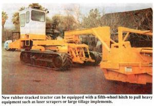 "We came up with the fifth wheel hitch in an effort to reduce damage to conventional drawbar hitches caused by heavy loads. The fifth wheel hitch puts the implement's weight at a point on the tractor where it can handle it better. The implement's weight is centered 2 ft. in front of the track's rear drive wheels. On a conventional tractor the implement's weight is centered behind the axle. That's not a problem when you're pulling light loads, but heavy loads can bend the hitch and cause the front end of the tractor to bounce up and down, even with front-end weights.