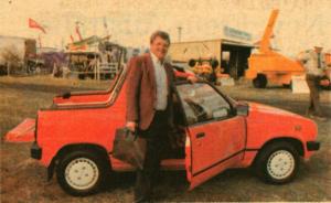 Highlights included a test drive of the world's smallest pickup ù the "Mighty Boy" from Suzuki. "It's selling like hotcakes. We can't get them fast enough," reported Geoff Garnder, Suzuki's area sales manager. Priced about $4,000, the sporty fun machine features a 543cc, 4 stroke, 3 cyl. watercooled engine, and manual or automatic transmission. It's 10 ft. long, 4¢ ft. wide and 4? ft. high. The 450-pound capacity cargo bed is wider (4 ft.) than it is long (26 in.). Suzuki is already marketing its mini jeep, the Samari, in the U.S. and may import the Mighty Boy once supply catches up with booming demand, an official told FARM SHOW. It's a winner ù easy to drive, easy to park, cheap to run and a real eye catcher.