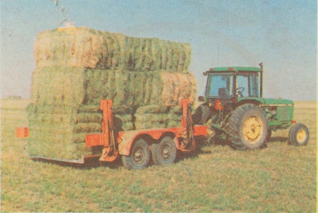 "My mechanized trailer-and-skid bale handling and feeding system eliminates most of the work in handling and feeding both big and small square bales," says Allen Leifer, Peabody, Kan., who has been testing the system on his farm for three years and now builds units for sale. He's also looking for a manufacturer to build the units under a license agreement.