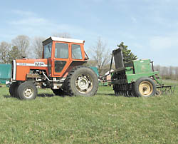 After reading stories in FARM SHOW and elsewhere about the process, Morrison decided to adapt his 80 hp diesel tractor and Grain Plains drill.