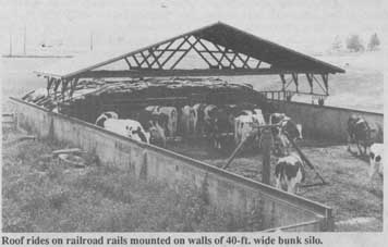 "It was a lot cheaper than covering the entire bunk with a roof," says John Van Esch, Chilliwack, B.C., about the rolling roof he put over his bunker silo to keep the exposed silage dry along with the cows who feed directly from the bunker.