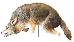 The coyote decoy is 3D so geese see it from every angle. Mounted on a center stake -- with a real tail -- the coyote moves with the wind.