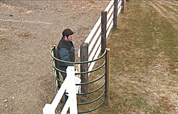 "The Half C Gate works especially well for arenas or riding pens. The curved walk through portion can be positioned entirely outside the arena," says Haberstroh.