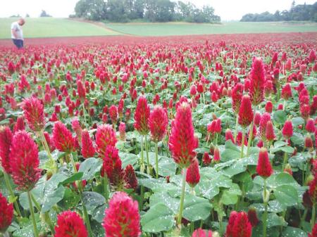 Kentucky Pride crimson clover flowers up to 2 weeks later than other