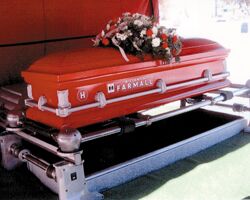 While standing next to a gray casket, Richard's sister Carol replied, "This feels just like the metal on a tractor after my husband gets through sandblasting it." When the funeral director returned, the siblings asked if they could paint the gray casket red. "He kind of swallowed real hard and asked where we wanted it delivered," Carol recalls.