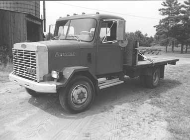 "It's a heavy-built 1 1/2-ton truck that has cost me very little over the years," says Victor Larson, Freesoil, Mich., about his 1984 Iveco cab-over truck which he "restored" by replacing the truck's original cab, which had rusted out, with one off a used Autocar truck. Larson bought the Iveco truck used and mounted a home-built flatbed on it. When the cab rusted out, he found a 1979 Autocar cab off a dump truck. The cab was longer than the Iveco cab so he removed the original truck frame and replaced it with a longer one off another used Iveco truck. He made a new front end, and also made a new hood, fenders, grille, muffler, and installed a set of headlights designed for snowplows. He also replaced the truck's original hydraulic brakes with air brakes. The truck still has its original engine, 5-speed transmission, drive train, chassis, and wheels. "It has way more than 200,000 miles on it so it doesn't owe me a nickle," says Larson. "I use it to haul grain, wheat seed, hay, shelled corn, equipment, pallets of wood, etc. It has 'armstrong' power steering and isn't a fancy truck, but it always gets me home. It can haul five to six tons at a time. I made my own grain box that mounts on the flatbed. The flatbed is equipped with a fifth wheel hitch for pulling trailers and has a receiver hitch on back. "The Iveco cab-over truck is made in Italy while the Autocar is a division of White trucks and is made in the U.S. Autocar trucks are still made today and are now part of the Volvo-White company. Autocar trucks are built tough. There's a saying that goes, 'All other trucks wear out, but Autocars just grow old'. I bought the Autocar cab at a scrap yard. "Although the Iveco cab was rusted out the chassis was still good. Altogether I used parts off three different Iveco trucks to rebuild this model."