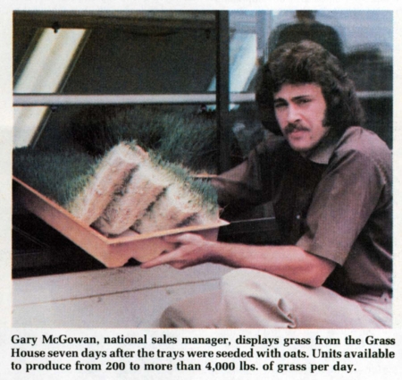 Another major improvement, according to McGowan, is replacement of galvanized trays, in which the seed was previously soaked, with corrosion-profiber glass trays, and a new method of foliar spraying nutrients onto the growing grass rather than soaking the roots. "We've also developed newer and better nutrient solutions, and improved the environment within the unit," explains McGowan.